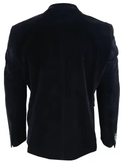 Mens Velvet Blazer Suit Jacket 2 Button Dinner Smart Casual Formal Tailored Fit – Black