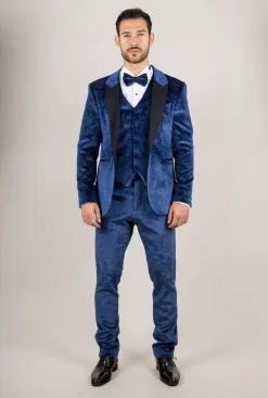 AK-27 Men’s Blue 3-Piece Velvet Wedding Tuxedo With Black Satin Lapels