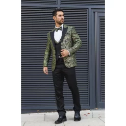 AK-25 Men’s Emerald Green 3-Piece Velvet Wedding Tuxedo With Black Lapels