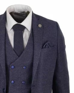 Cavani Carnegi – Mens 3 Piece Navy Blue Tweed Check 1920’s Vintage Suit