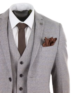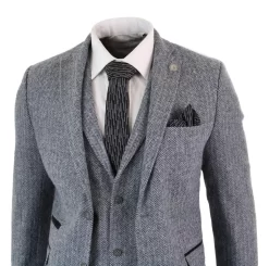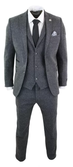 Men’s Charcoal Grey 3 Piece Tweed Herringbone Suit – STZ11