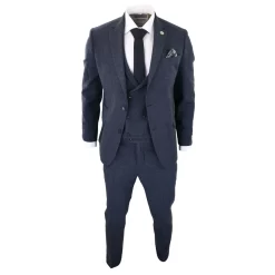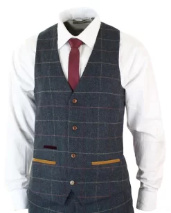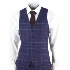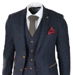 Mens Herringbone Tweed 3 Piece Navy Red Check Suit Vintage 1920s Tailored Fit