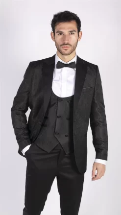 Mens Paisley Tuxedo Blazer And Waistcoat Brocade Dinner Jacket Satin Black Fit β No Trousers
