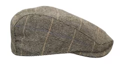 Cavani Kempson Flat Cap – Mens Tweed Wool Check Grandad Hat Vintage – Olive Green/Navy Blue