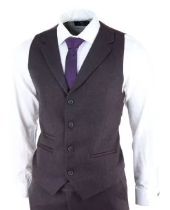 Men’s Herringbone Wine Maroon 3 Piece Tweed Suit – STZ11