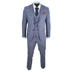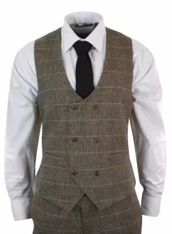 Men’s 3 Piece Suit Wool Tweed Green Blue Brown Check 1920s Gatsby