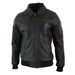 Men’s Leather Harrington Black Bomber Classic Pilot Jacket