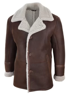Men’s Shearling Sheepskin Duffle Coat WW2 UK Winter 3/4 Leather Hood