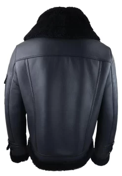 Mens Shearling Sheepskin Coat Zipped Flying Jacket Black Winter Warm Fur