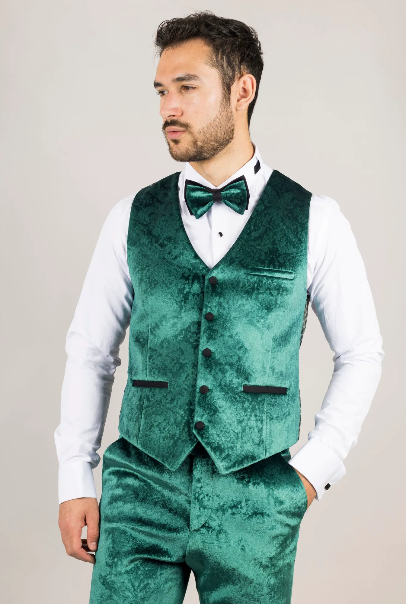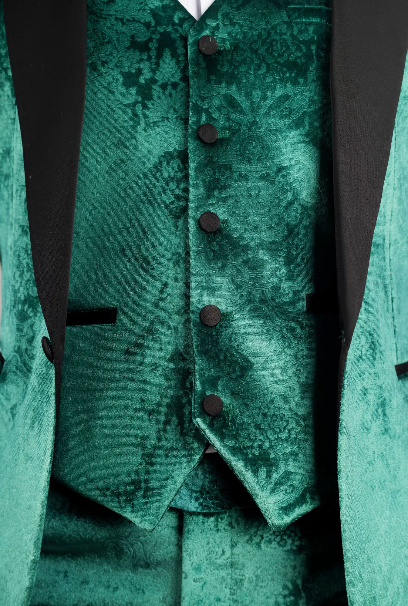 Our tuxedo suit is crafted for the modern gentleman who values timeless elegance with a contemporary edge. It is perfect for various formal occasions such as weddings, proms, parties, dinners, and evening events. The ensemble combines premium materials, meticulous tailoring, and thoughtful details to ensure you exude confidence and style. The shawl satin lapel and velvet paisley accents contribute to a sophisticated and enduring aesthetic, guaranteeing you’ll command attention in any gathering. The single-breasted jacket, vest, and tailored trousers provide both comfort and a flattering silhouette.