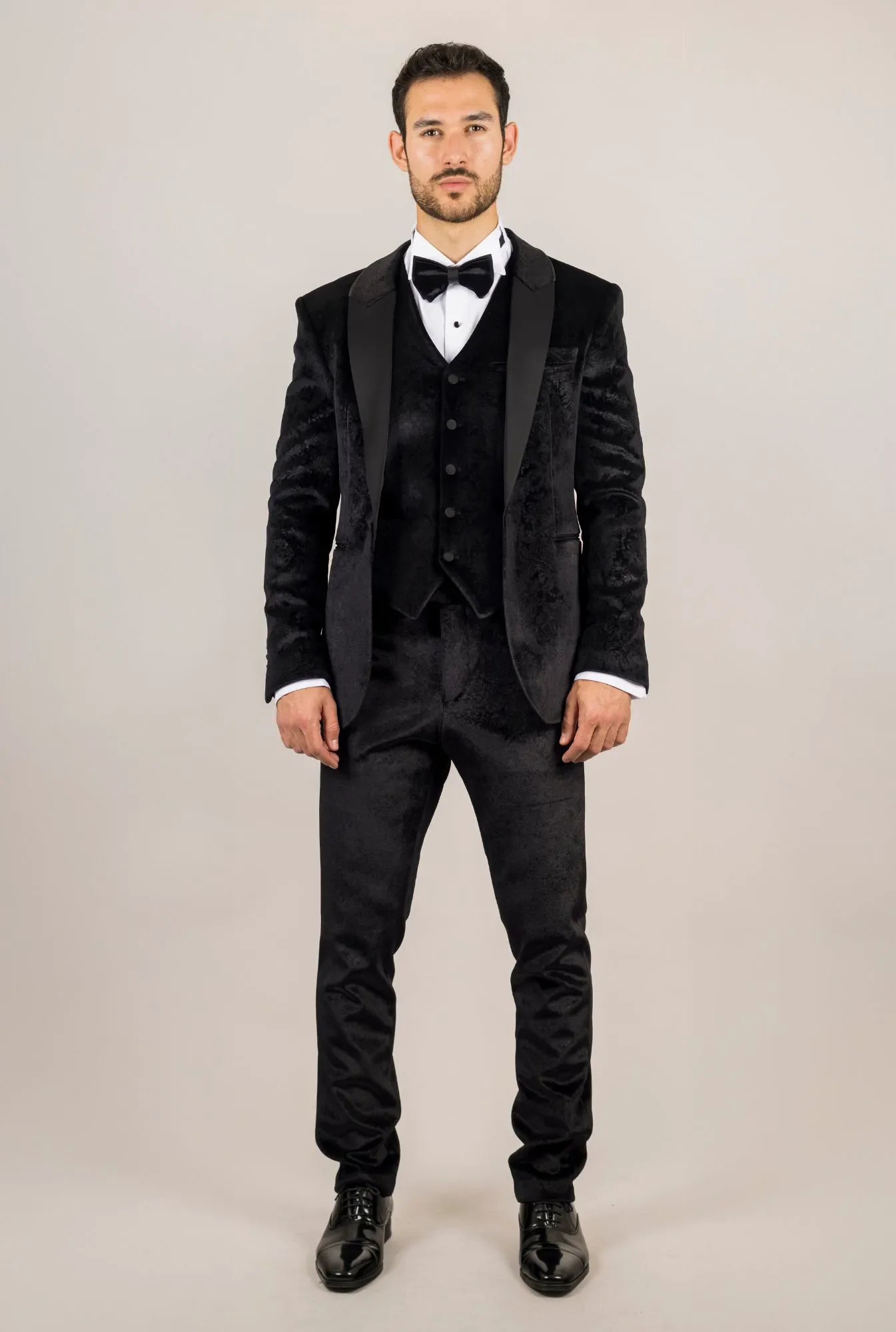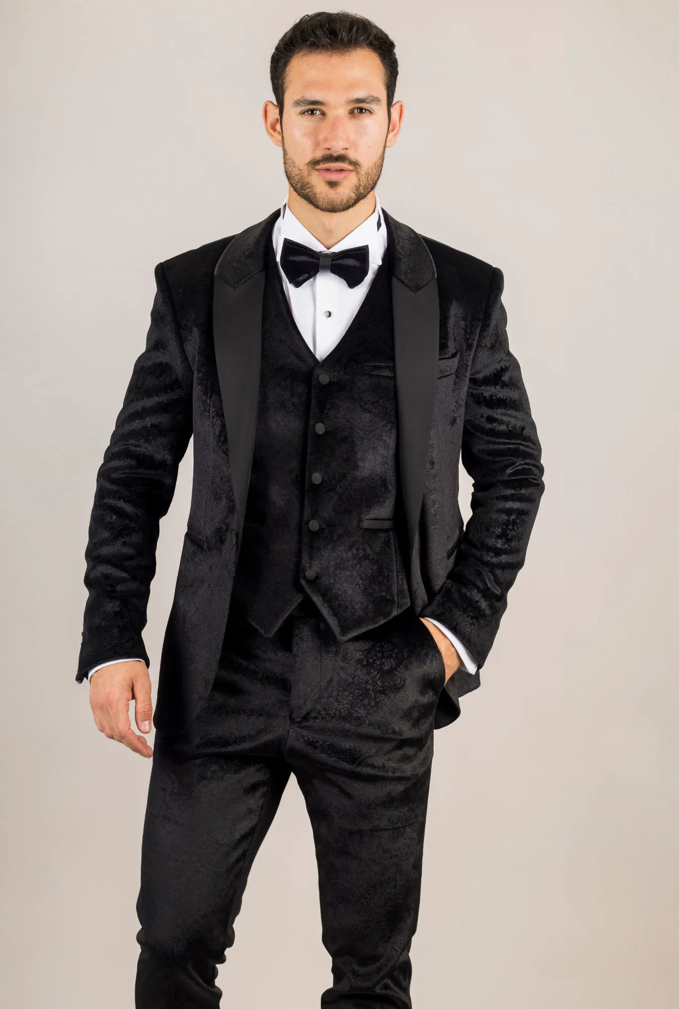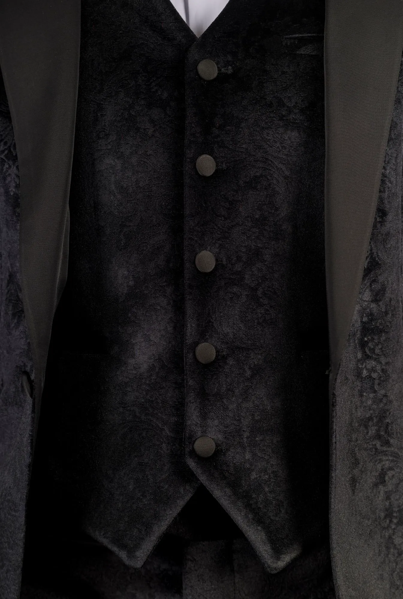 Our tuxedo suit is crafted for the modern gentleman who values timeless elegance with a contemporary edge. It is perfect for various formal occasions such as weddings, proms, parties, dinners, and evening events. The ensemble combines premium materials, meticulous tailoring, and thoughtful details to ensure you exude confidence and style. The shawl satin lapel and velvet paisley accents contribute to a sophisticated and enduring aesthetic, guaranteeing you’ll command attention in any gathering. The single-breasted jacket, vest, and tailored trousers provide both comfort and a flattering silhouette.