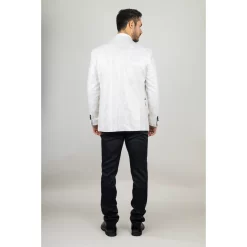 * Luxurious Paisley Detailing: The white blazer features intricate gold paisley patterns, adding a sophisticated touch of luxury and uniqueness to your outfit