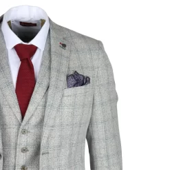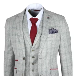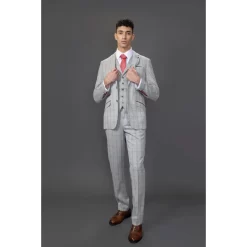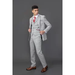 * Timeless Elegance: Embrace classic sophistication with this grey checked slim fit 3-piece suit, featuring a stylish and modern design that’s perfect for any formal occasion