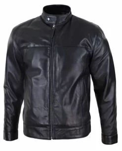 - Mens Genuine Black Leather Zipped Jacket Nehru Collar