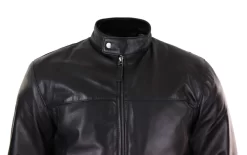 Mens Classic Zip Real Leather Jacket Nehru Grandad Collar Biker Style