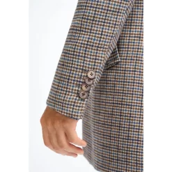* Classic Dogtooth Pattern: The distinctive dogtooth tweed design adds a sophisticated touch, enhancing the coat’s overall aesthetic and making it a versatile addition to any wardrobe