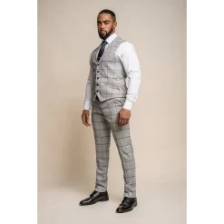 * Tweed Check Elegance: The Ghost grey waistcoat for men exudes sophistication with its tasteful tweed check pattern, adding depth and texture to your ensemble.