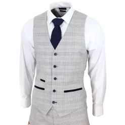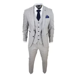 * Paul Andrew Hugo Grey check pattern: The suit features a sophisticated grey base colour with a navy check pattern, giving it a classic and timeless look.