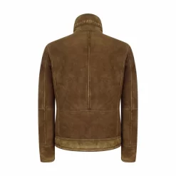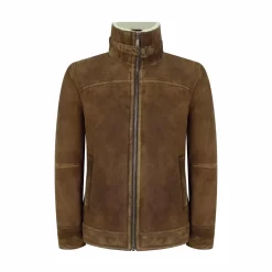 - Mens Zip Vintage Shearling Sheepskin Jacket Brown & Beige