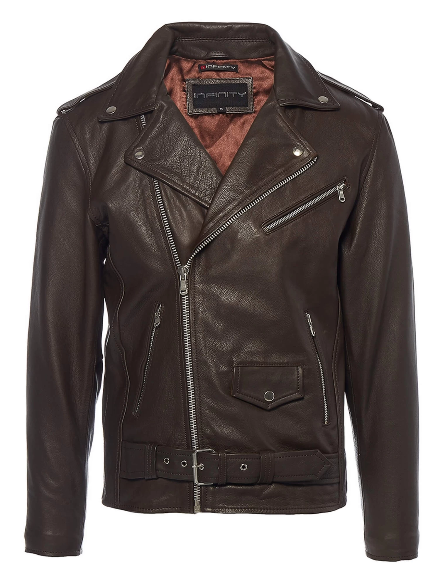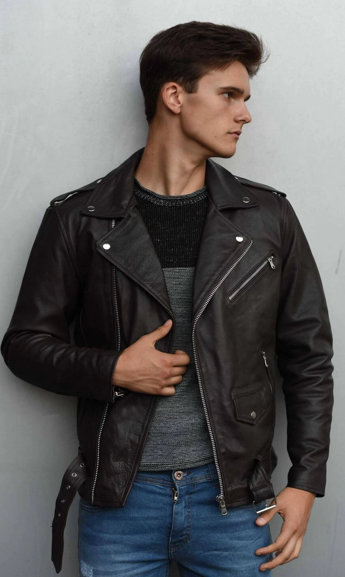 - Mens Classic Real Leather Brando Style Biker Jacket