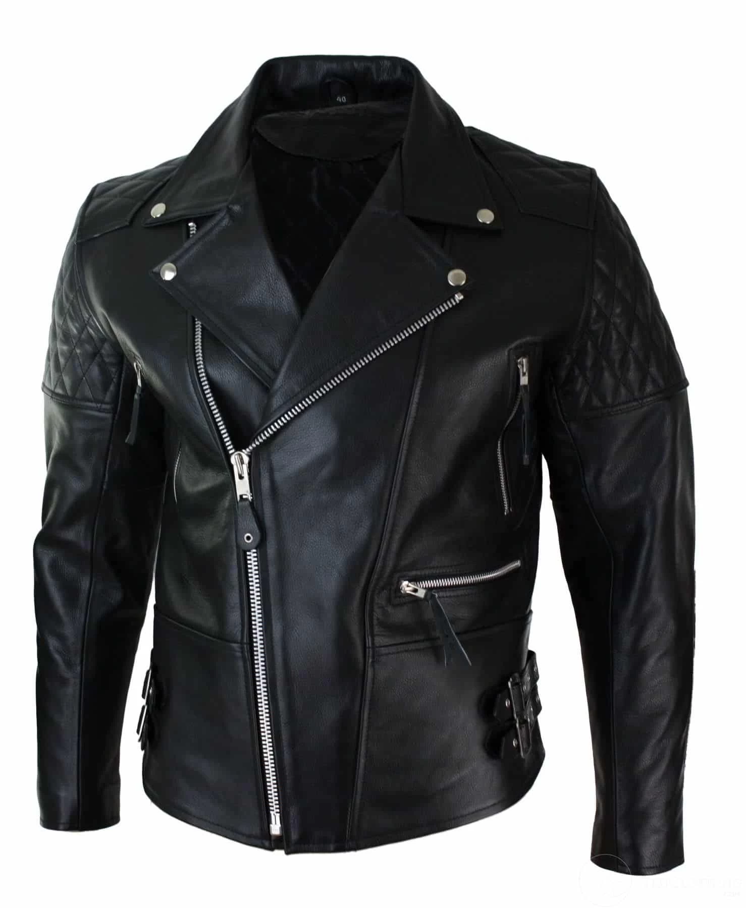 - Mens Real Leather Cross Zip Biker Style Jacket