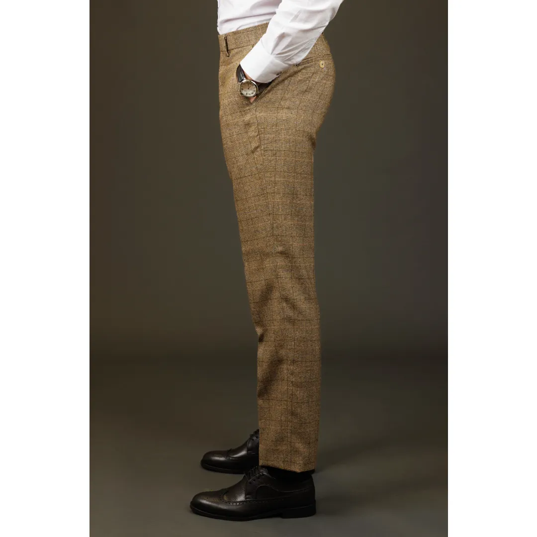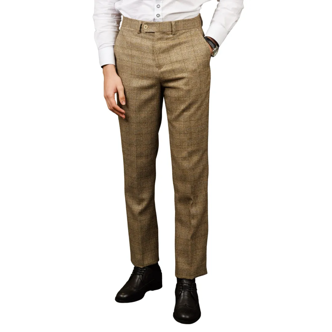 * Stylish Design: These trousers feature a classic brown checked pattern, adding a sophisticated touch to any wardrobe