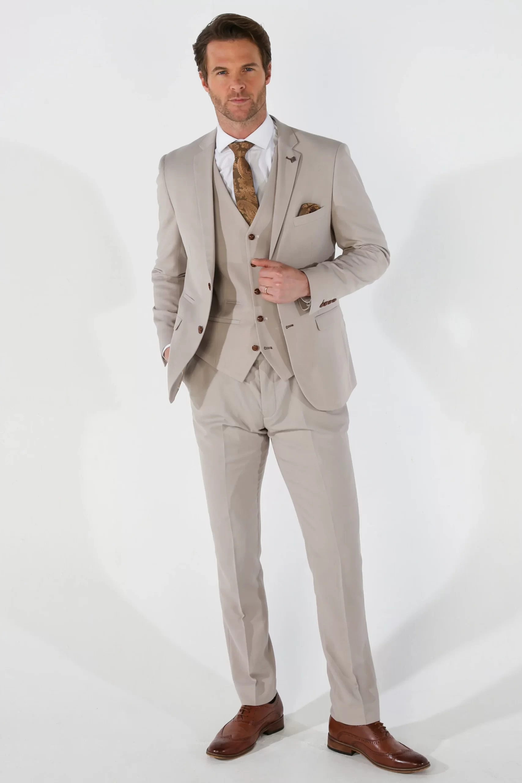 * Timeless Elegance: This classic birdseye suit in beige exudes timeless elegance, making it the perfect choice for summer weddings and other formal occasions