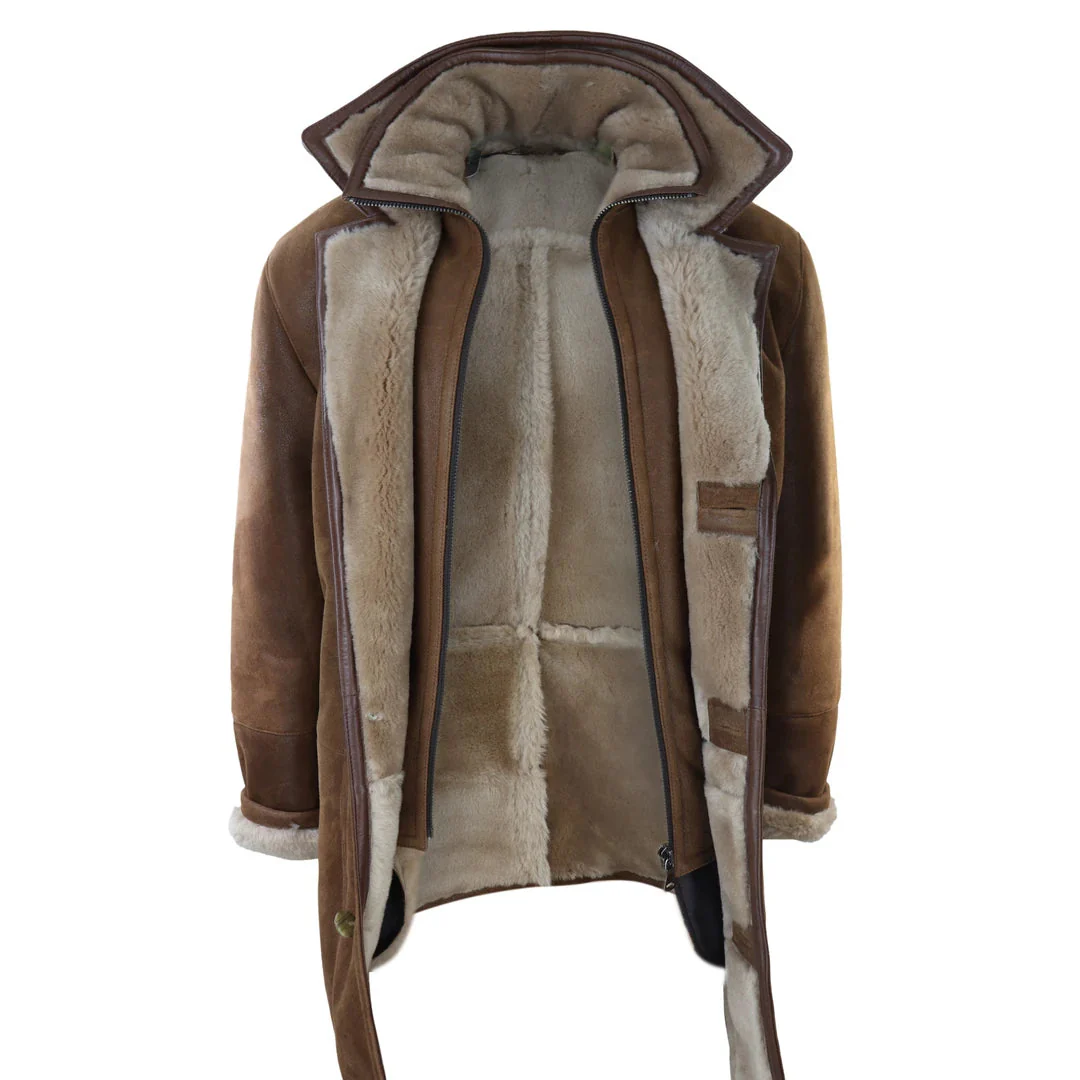 Mens Genuine Sherling Tan Sheepskin Jacket Long 3/4 Length