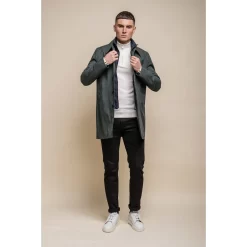 ? Mens Double Lined Brando Mac Olive Overcoat Jacket With Button Front & Inner Zip Removable Lining
