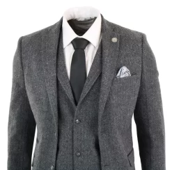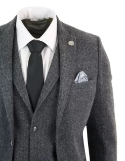 - Mens 50% Wool Herringbone Tweed 3 Piece Suit Tailored Fit