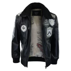 Waist Length With Detachable Fur Collar US Map Flag Badge & Top Gun Traditional Badges On Front & Sleeves