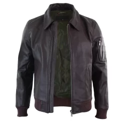 Mens Burgundy Real Cow Hide Leather Harrington Bomber Jacket