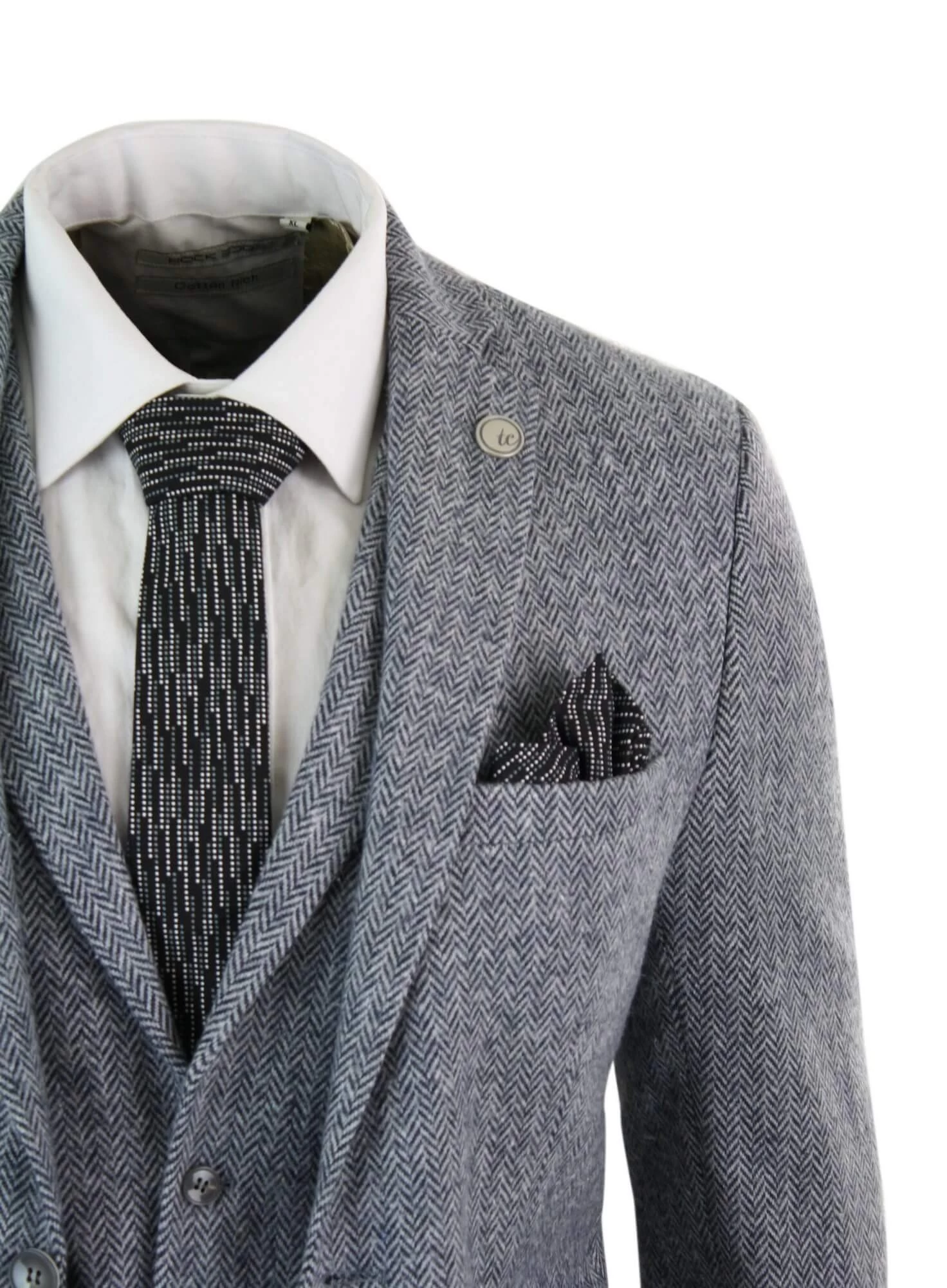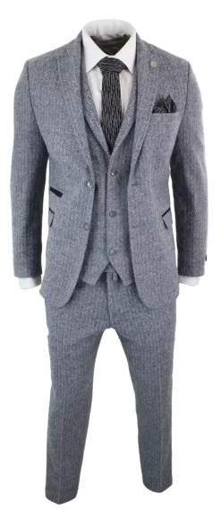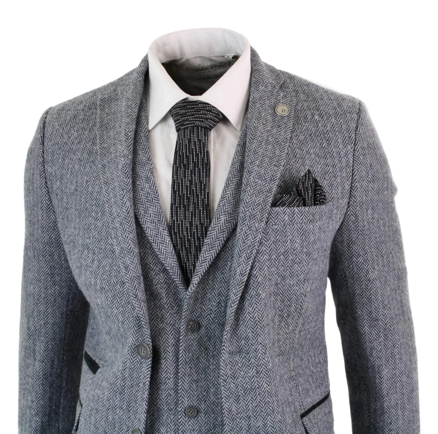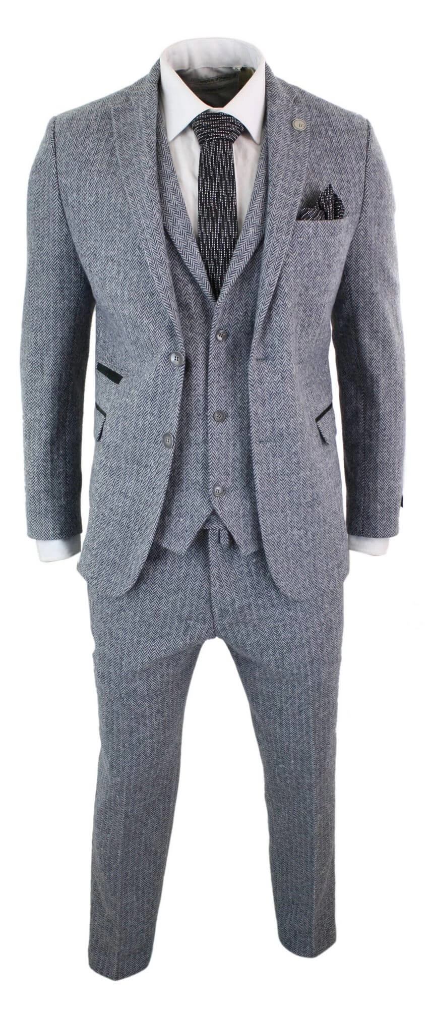 - Mens 50% Wool Herringbone Tweed 3 Piece Suit Tailored Fit