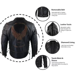 Original Belted Cross Zip Jacket With Belted Design With Tassel String & ‘Ride To Live’ Slogan