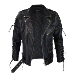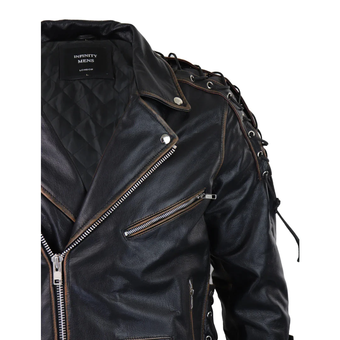Mens Original Classic Biker Brando Jacket In Black Brown Vintage Hide Leather