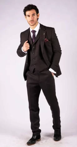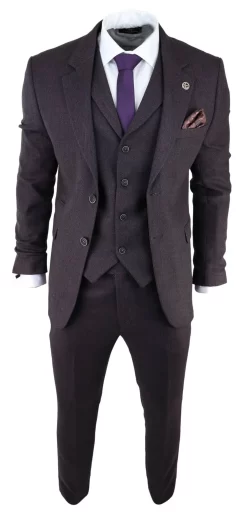 Men’s Herringbone Tweed 3 Piece Suit Purple Plum Tailored 1920s Vintage Blinders