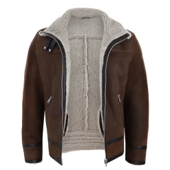 ? Mens Brown Oak Vintage Real Sherling Sheepskin Jacket