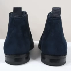 * Navy Classic Chelsea Boot Silhouette: Designed in a classic Chelsea boot shape, these boots combine sophistication and versatility, making them ideal for both casual and semi-formal occasions