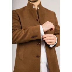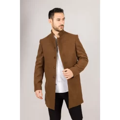 * Wool Blend Fabric: Crafted from a high-quality wool blend, this brown overcoat provides warmth and durability, ideal for maintaining comfort in colder seasons