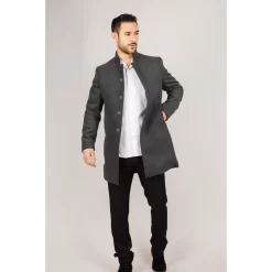 * Wool Blend Fabric: Crafted from a high-quality wool blend, this grey overcoat provides warmth and durability, ideal for maintaining comfort in colder seasons