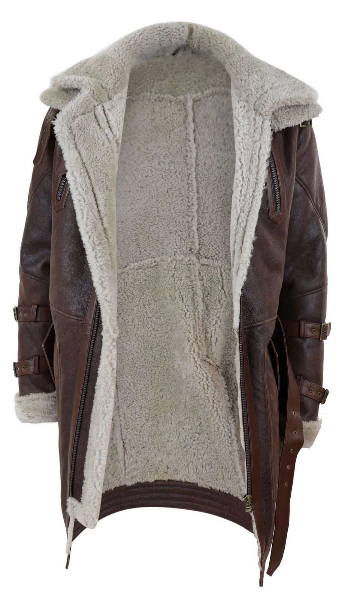 - Mens Genuine Sherling Sheepskin Jacket Long 3/4 Length