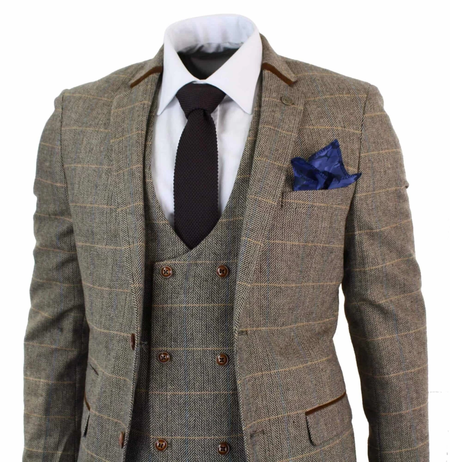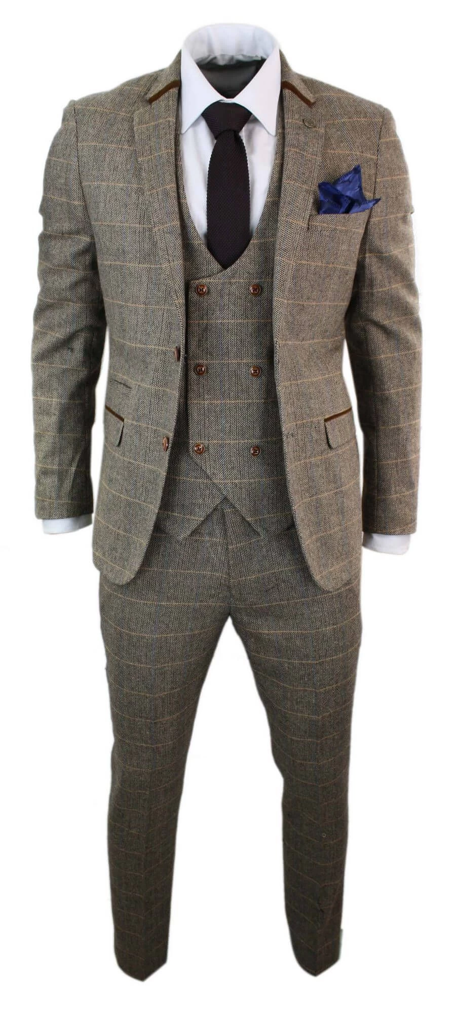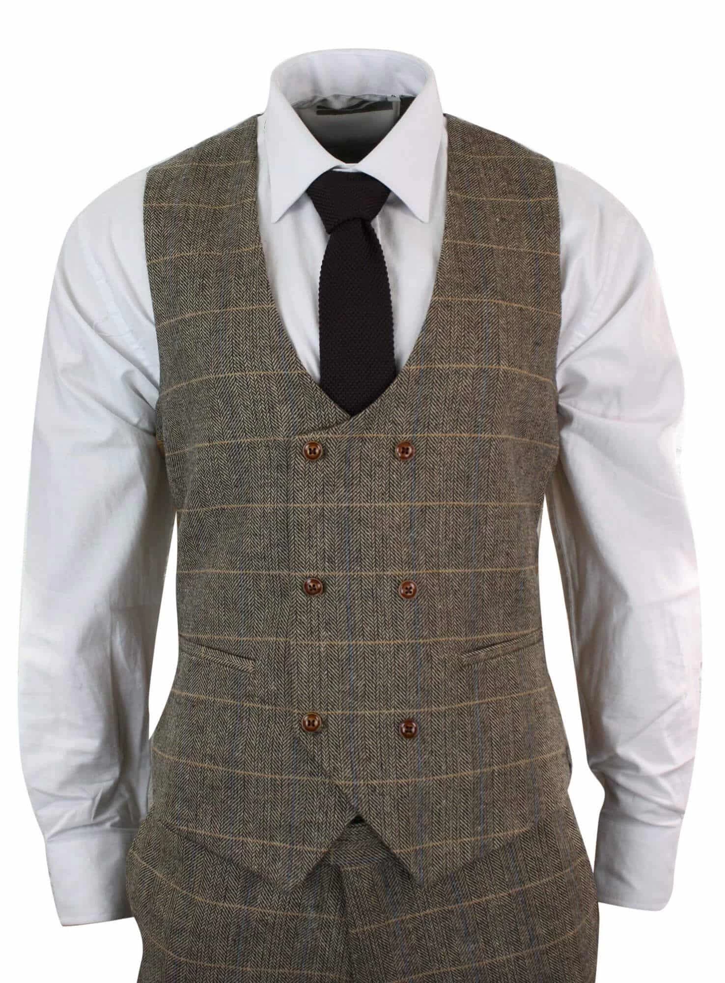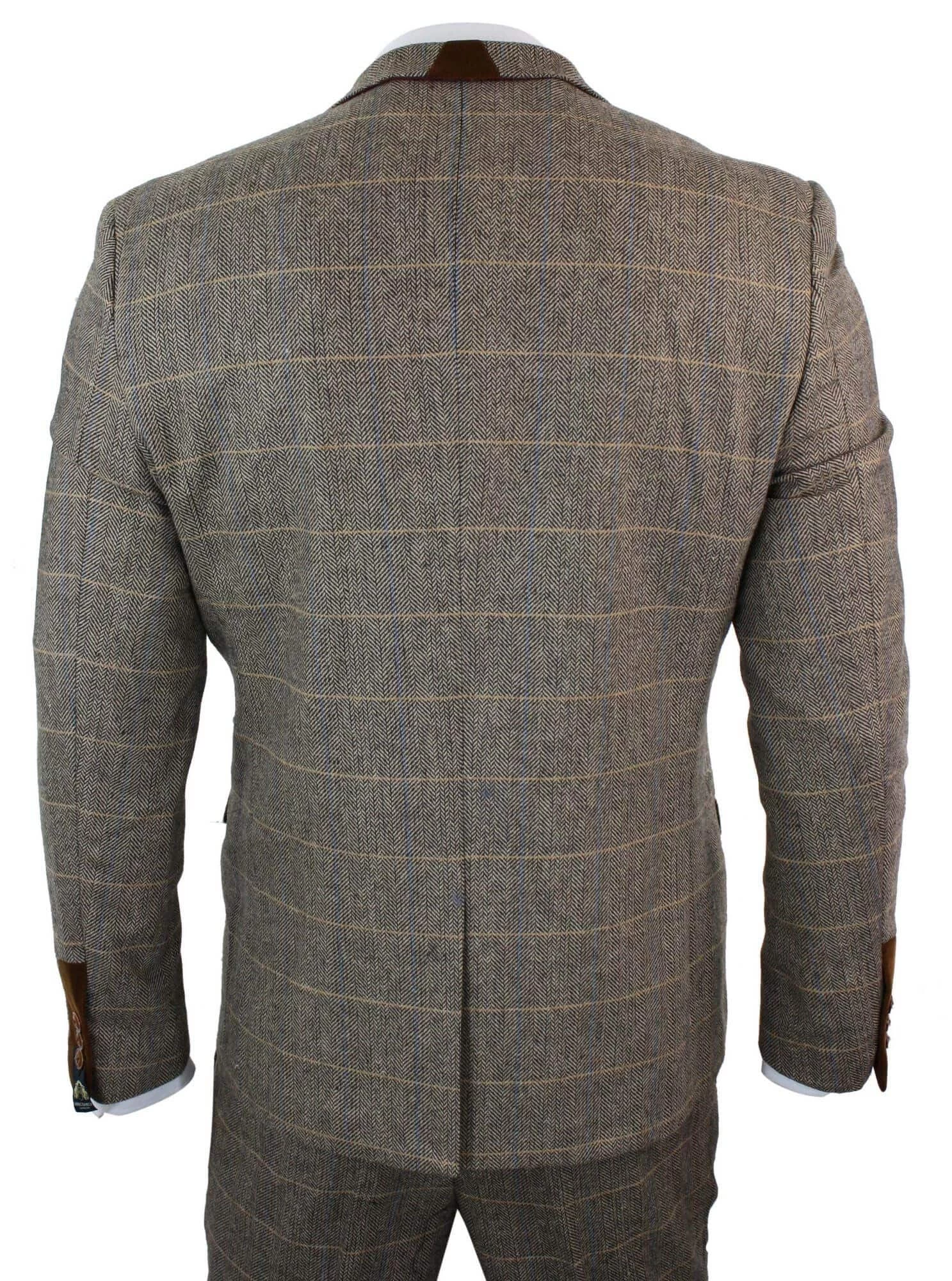 - Mens 3 Piece Herringbone Tweed Check Suit
