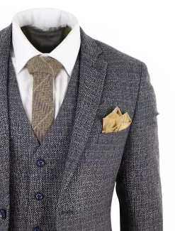 * Exterior is finished in a wool textured tweed check fabric with a subtle contrasting check & contrasting lining to match up with the hanky and navy trim detailing