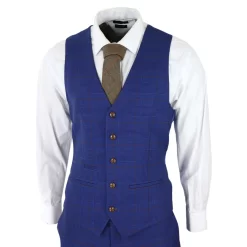 * Finished In Blue Brown Check Prince Of Wales Fabric With 2 Button Front & Double Vent Back