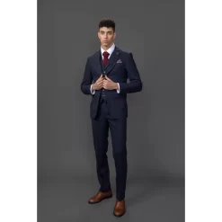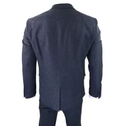 - Menโs Navy Blue Tweed Herringbone 3 Piece Wool Suit Complete With Blazer, Waistcoat & Trousers
