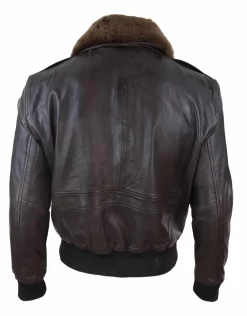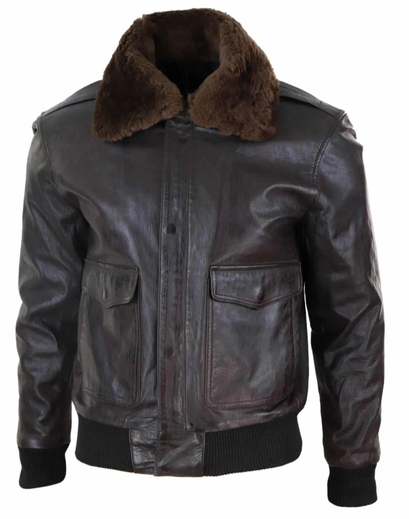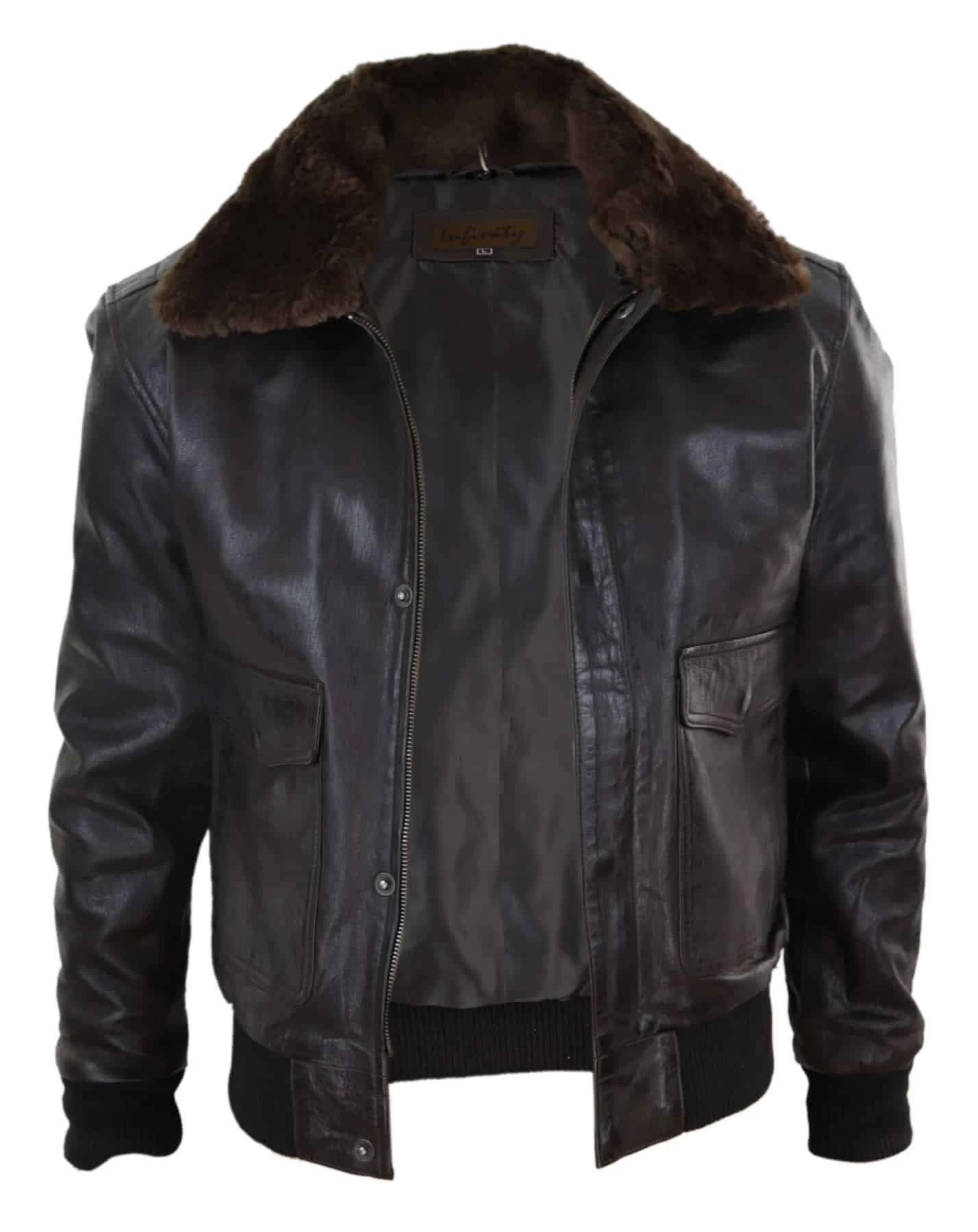 - Mens Genuine Leather Pilot Fur Collar Bomber Flying Jacket