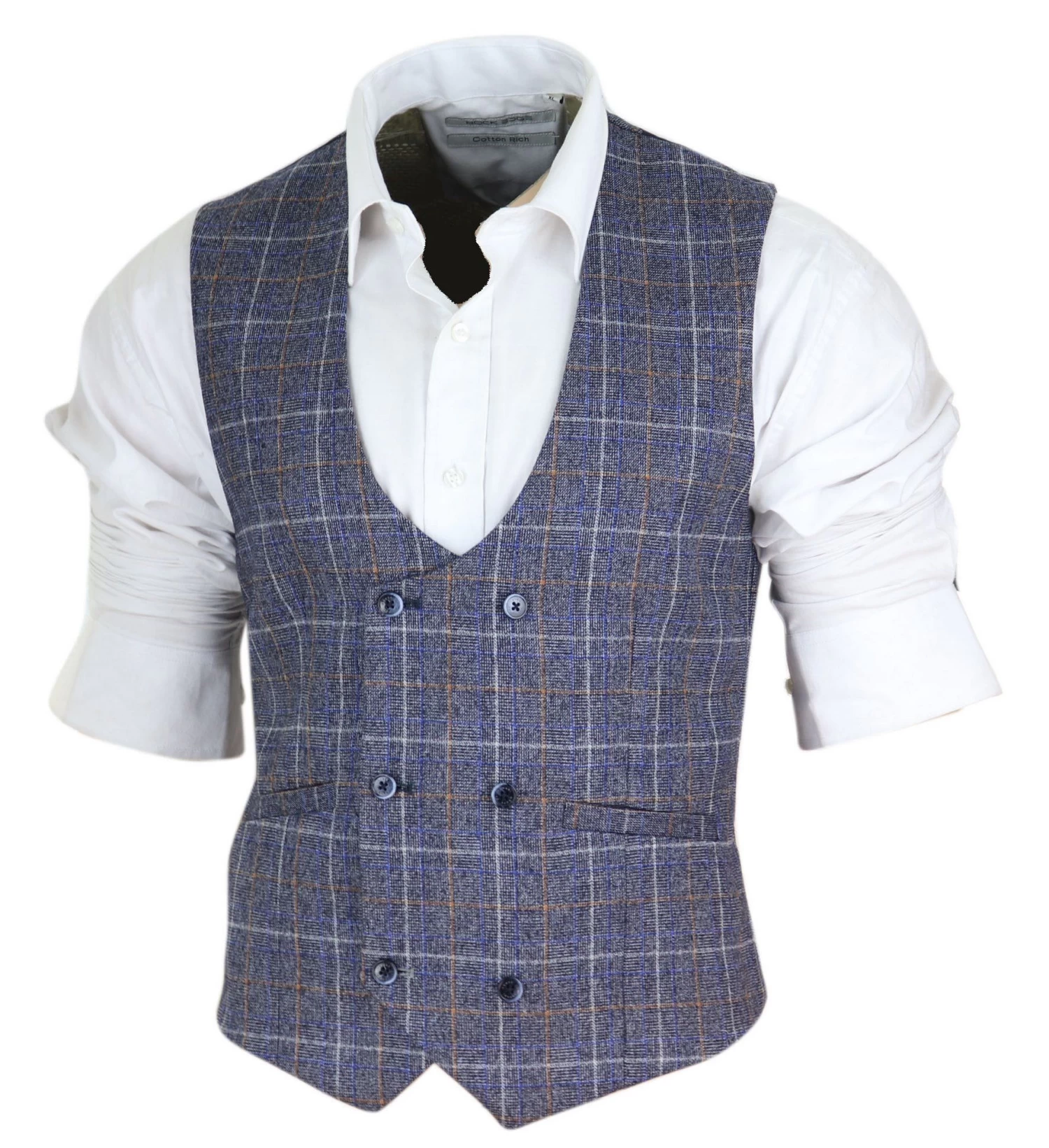Mens Double Breasted Waistcoat 1920s Peaky Blinders Smart Casual Pocket Chain
