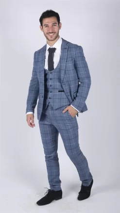 * Menβs Marc Darcy Blue Grey Check Blazer Jacket Slim Fit Smart Formal