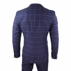 Mens 3 Piece Blue Suit Herringbone Tweed Check Tailored Fit 1920s Wedding Prom