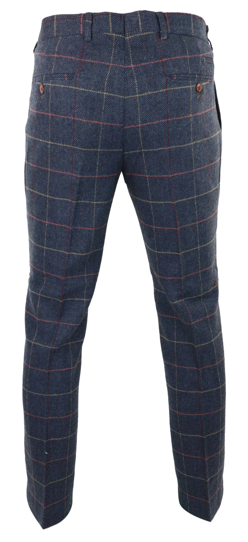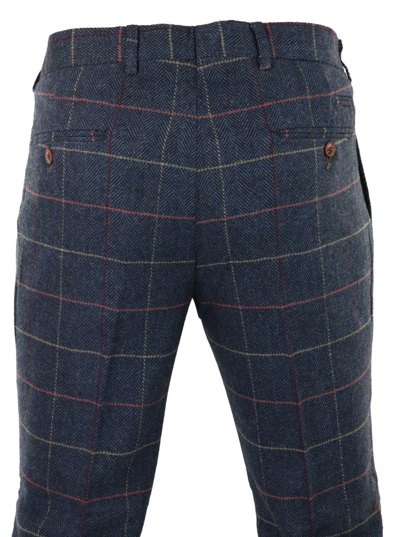 Herringbone Tweed Navy Marc Darcy Eton Trousers Made In A Tailored Fit Cut (inbetween slim & regular fit)